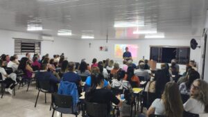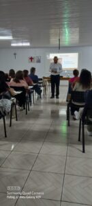 No que diz respeito às orientações Pe. Vanderlei Palu e Maristela Baseggio explanaram sobre os principais compromissos e ajudaram o grupo a proceder o cadastramento para o curso.